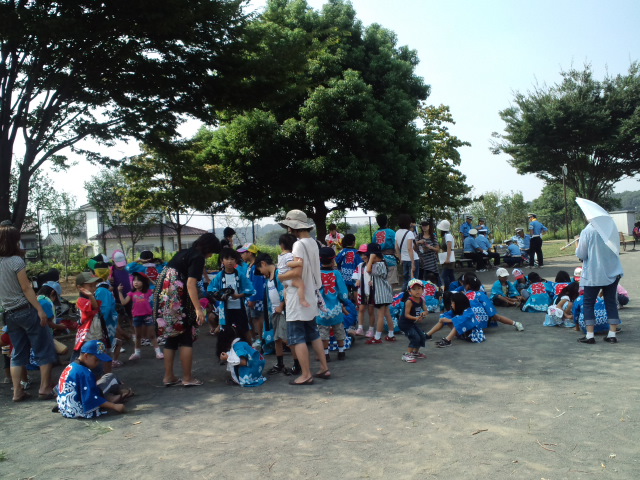 おみこし前に結構疲労困憊の子どもたち・・・。