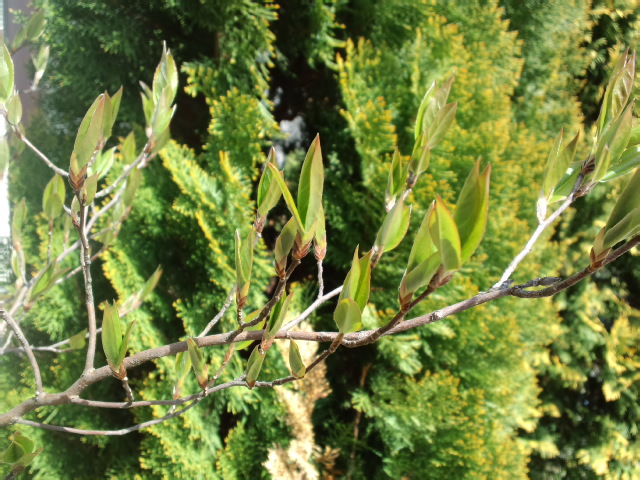 冬の間、小さくついていた蕾から芽が出てきました。