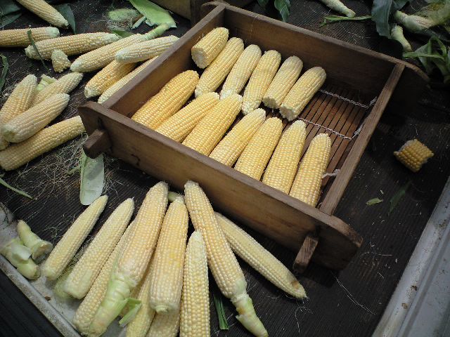ジャガイモ、枝豆、とうもろこしなどを収穫します。