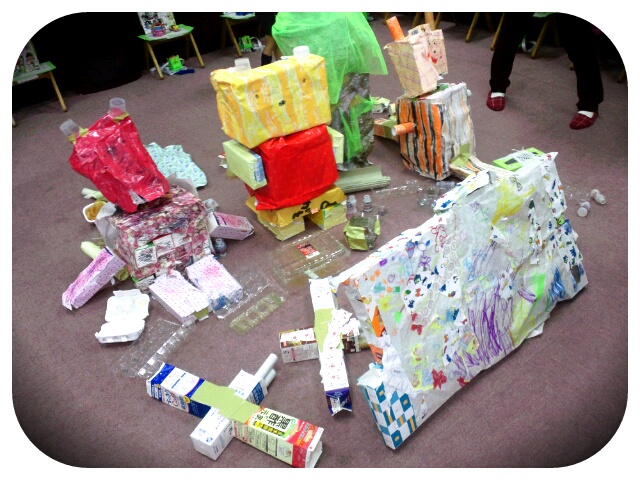 先日の父親参観やイベントデーで色付けした紙粘土。