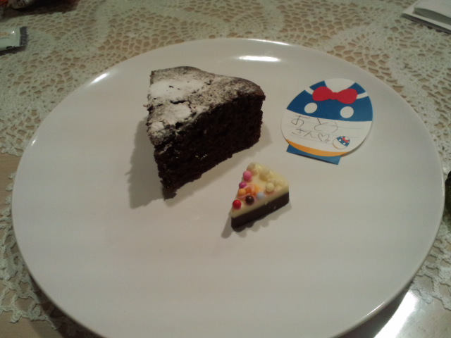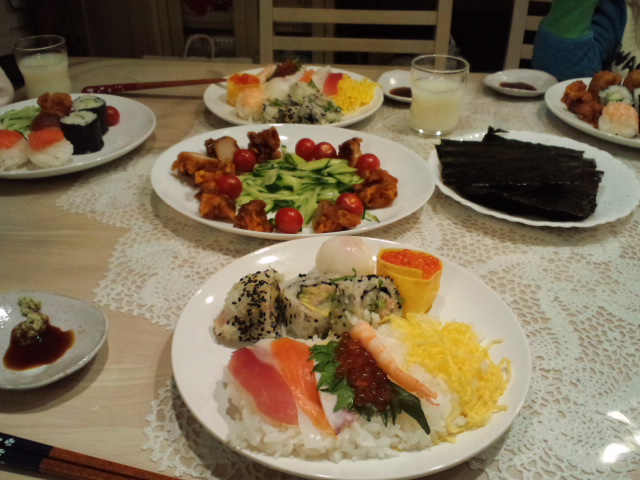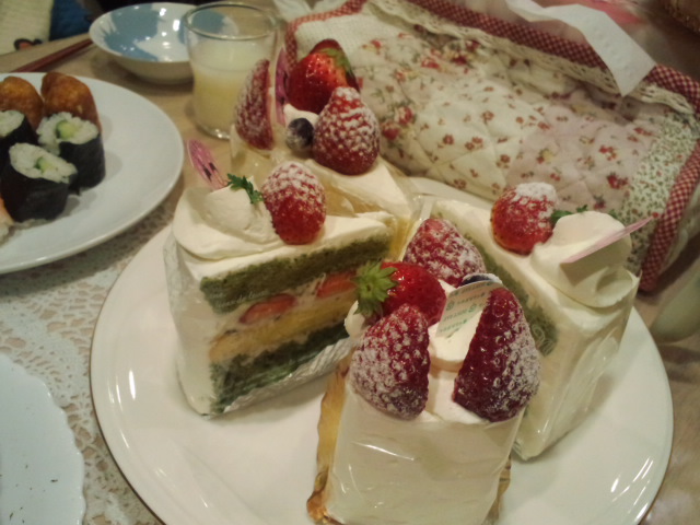 お寿司とケーキでお祝いです。