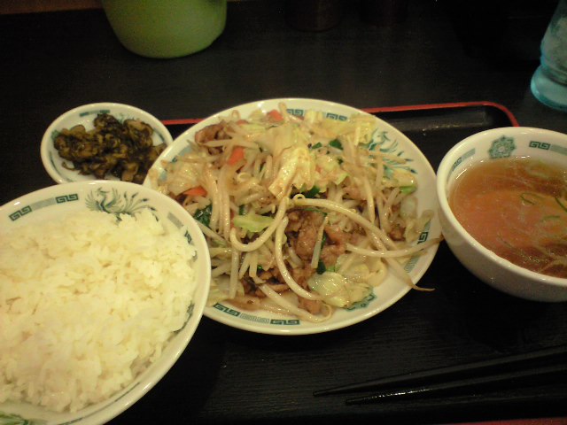 <日替わり定食の肉野菜炒め 650円也>