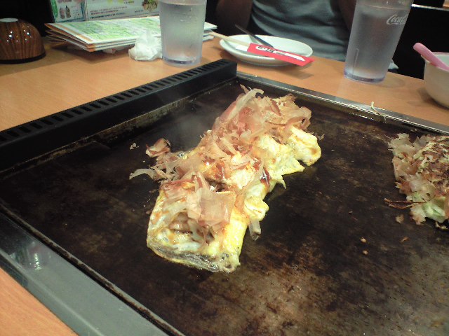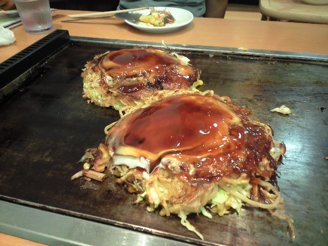 お好み焼き、モダン焼き、トンペイ焼きを注文しました。