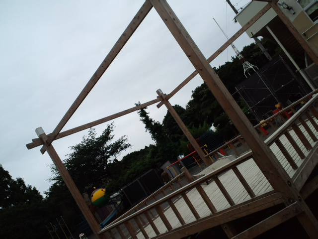 夕涼み会用やぐら建ちました。