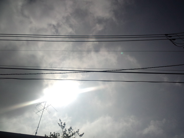 空を見上げると厚い雲の間から青空が見え隠れしています。