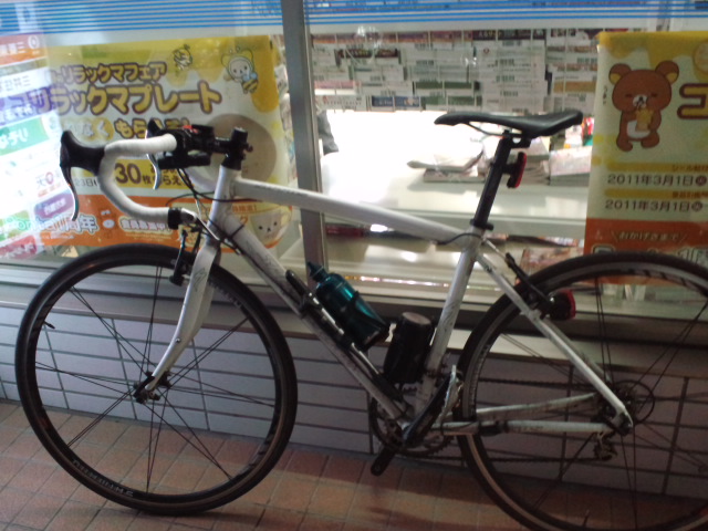 途中で自転車をスーパーの駐輪場に