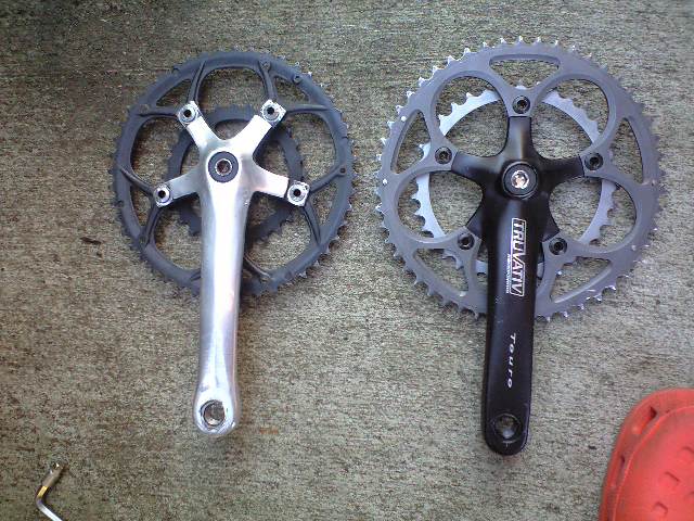 クランクとチェーンリングのセットの比較です。