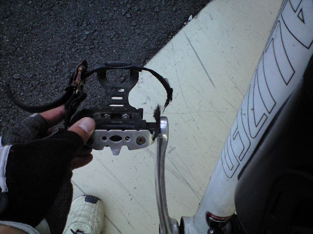 購入当時から着いていたトゥクリップペダルのひも部分が