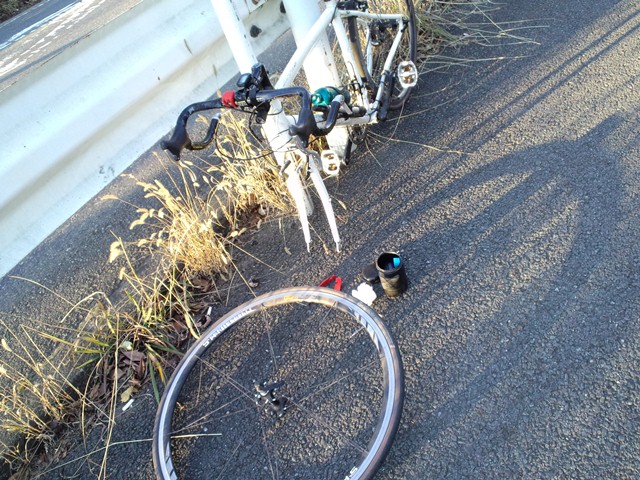 小石がカットされているタイヤの隙間に入り込んでいます。