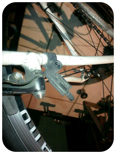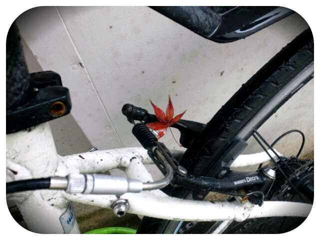 ブレーキ周辺を見ると落ち葉がついていました。